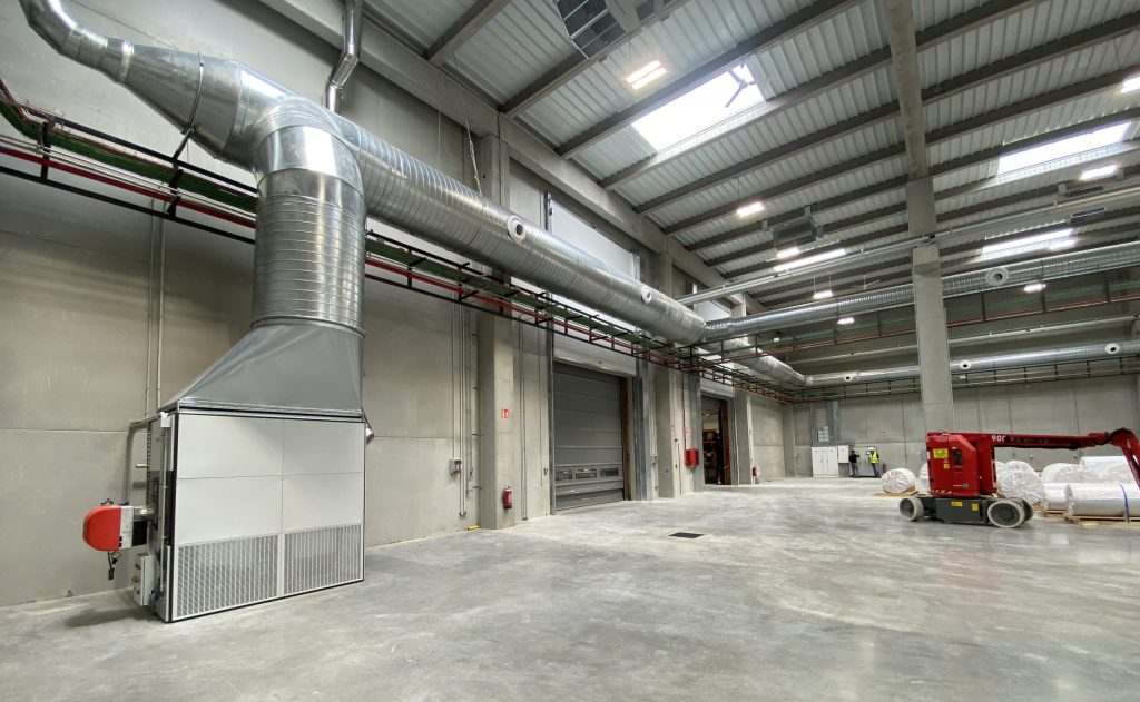 Los generadores de aire industriales son una solución muy habitual para calentar naves industriales por su rapidez, capacidad de caudal y eficiencia en grandes volúmenes.