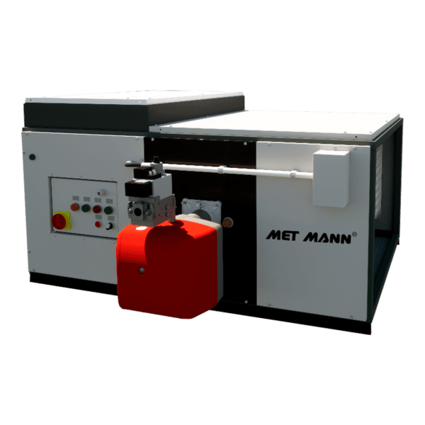 Hot air heater for drying processes with a heating power of 67 kW and an air flow of 6.000 m3/h with a thermal jump of 30 ºC
